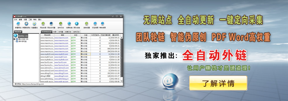 全自动化:只要您建立网站后,软件将自动化运行,彻底解放您的双手.